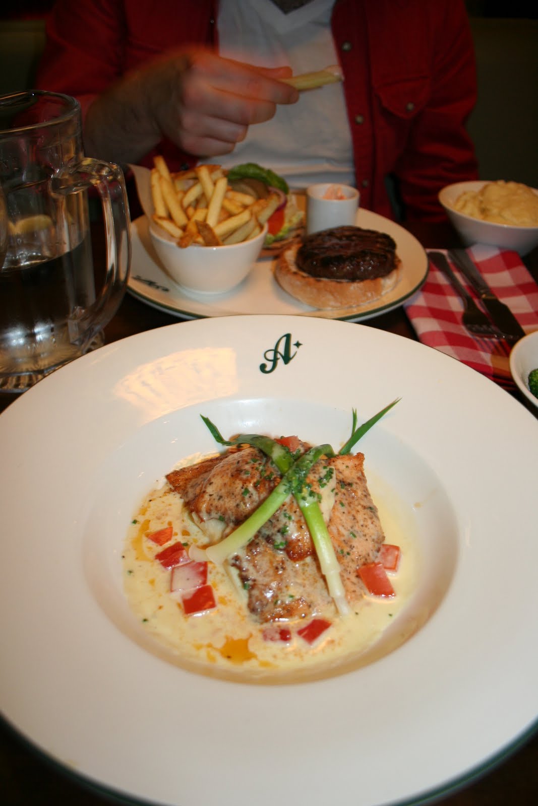 salmon with leeks, burgers, mash and broccoli!.. it was all soooo good! x